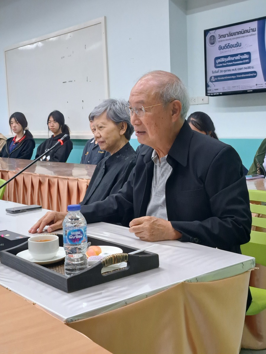 On October 30, 2025, Dr. Krai Soongsawang, Trustee of Create Your Future Foundation (CYF), accompanied by Dr. Oranuj Soongsawang, visited Nan Technical College to distribute scholarships to students supported by CYF.