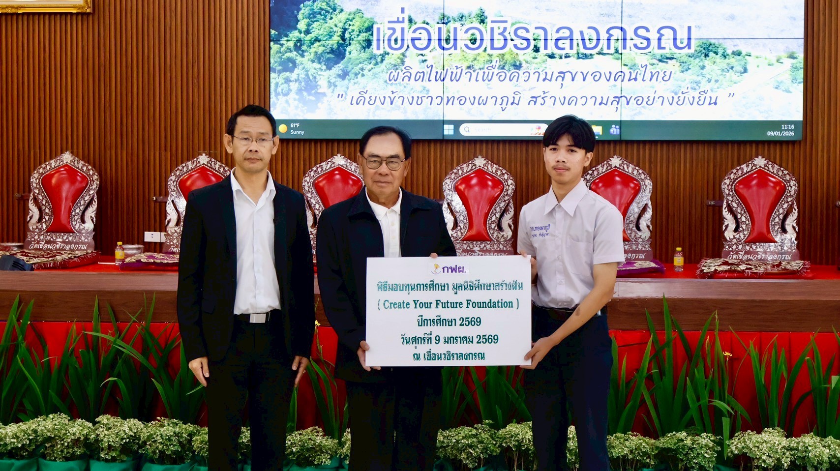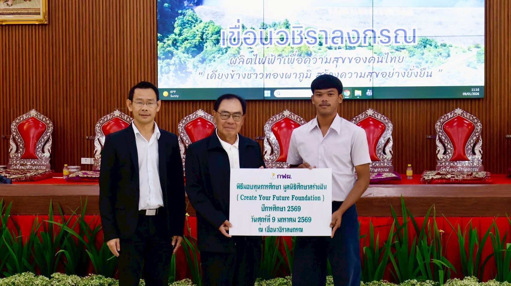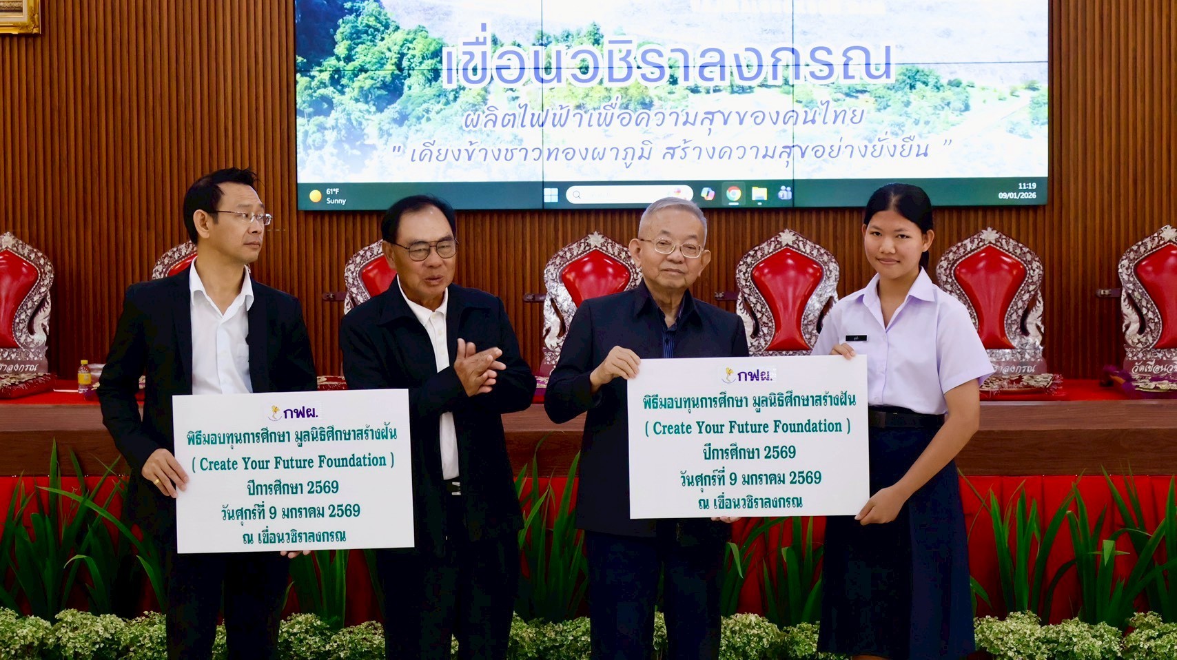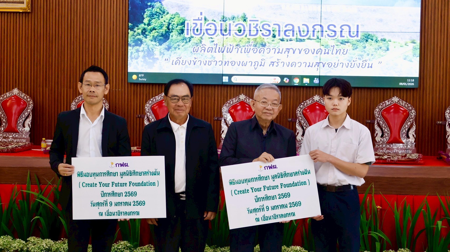On January 9, 2026, the EGAT team at Vajiralongkorn Dam hosted a scholarship distribution ceremony for CYF scholarship recipients from Thong Pha Phum Industrial and Community Education College. As of the second semester of 2025, we are awarding 15 scholarships to this college through our partnership with EGAT.