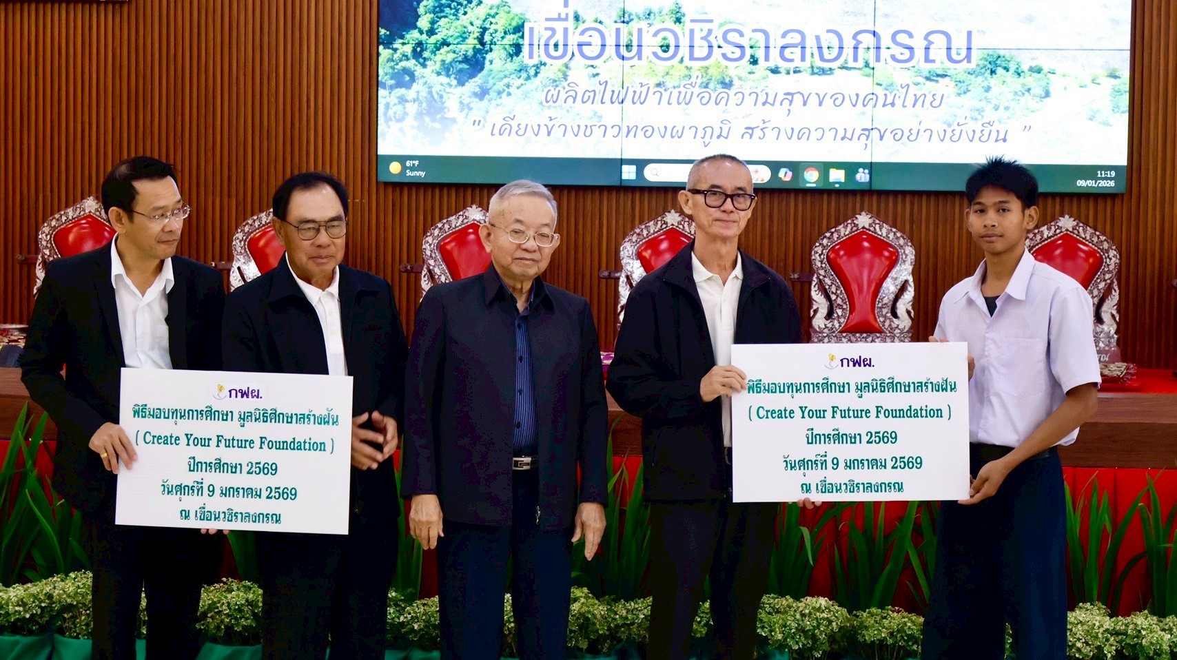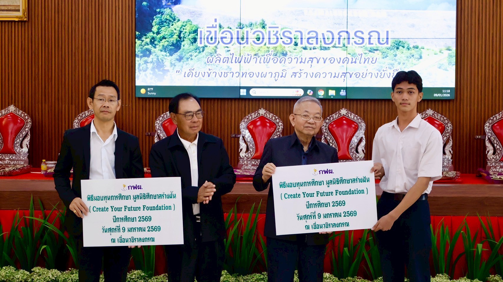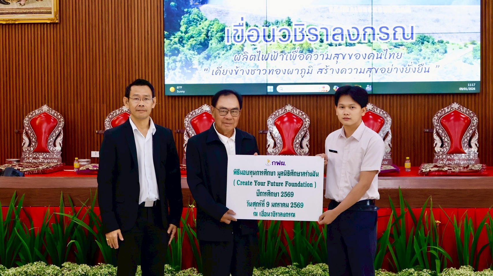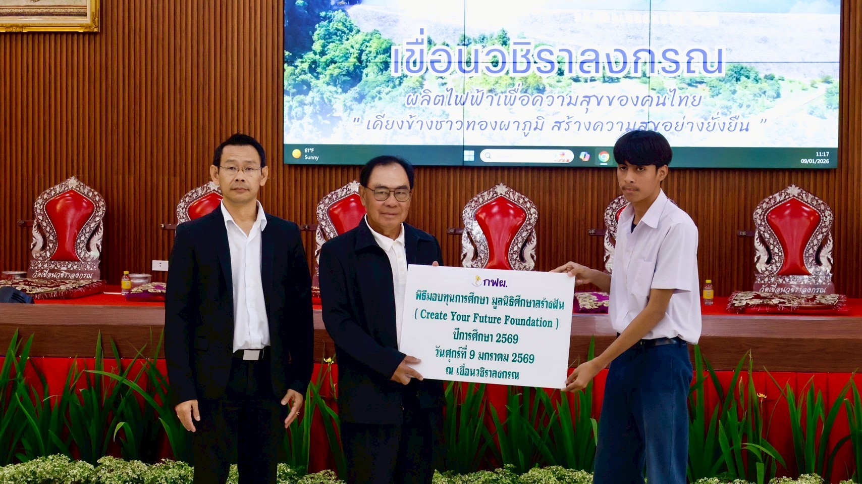 On January 9, 2026, the EGAT team at Vajiralongkorn Dam hosted a scholarship distribution ceremony for CYF scholarship recipients from Thong Pha Phum Industrial and Community Education College. As of the second semester of 2025, we are awarding 15 scholarships to this college through our partnership with EGAT.