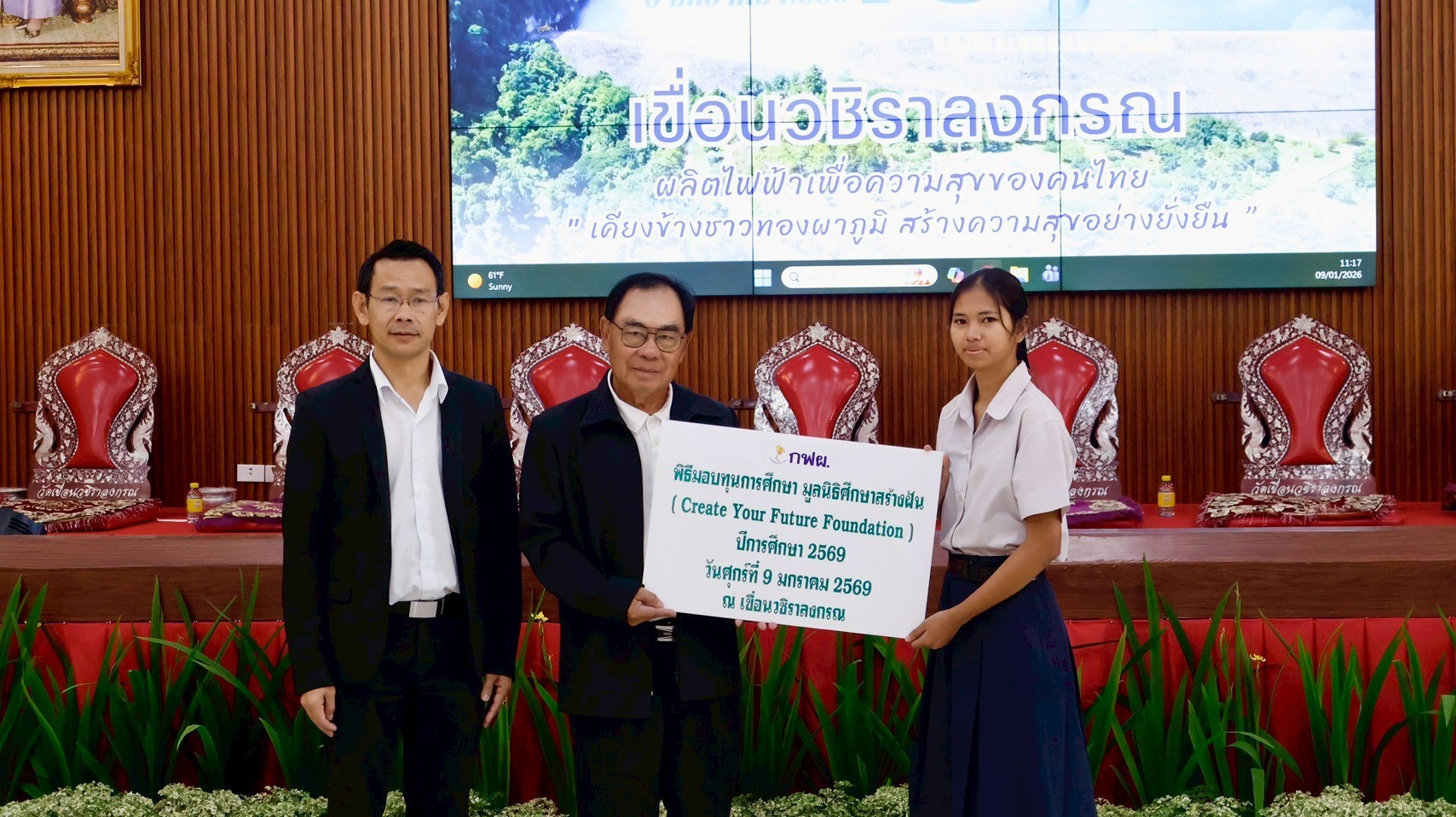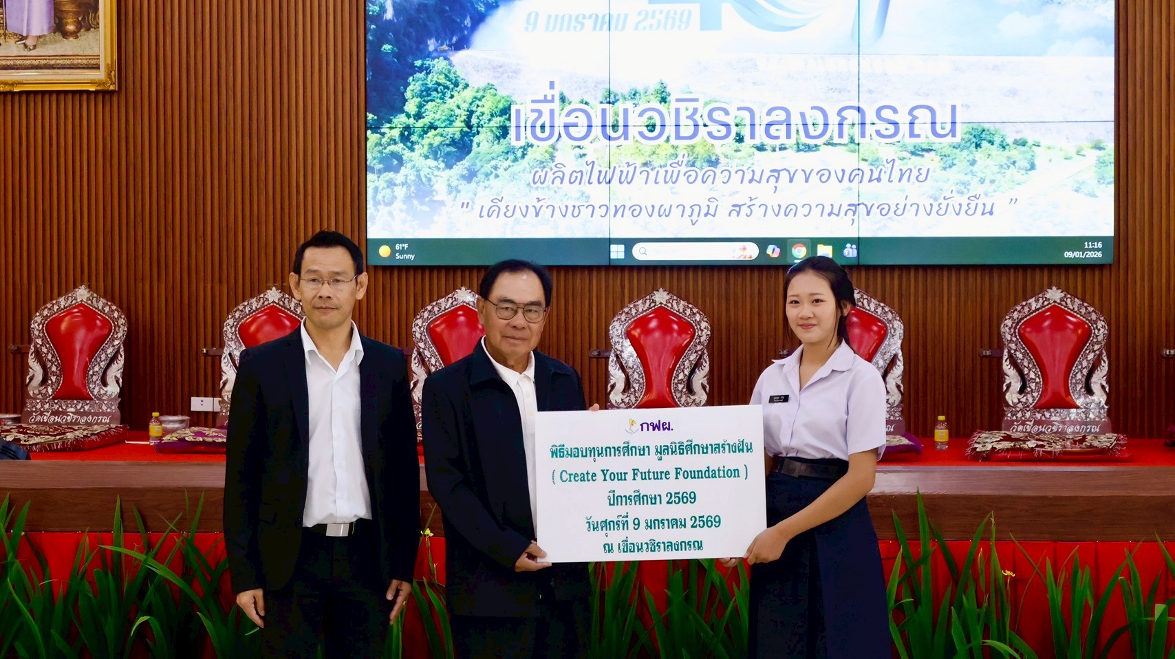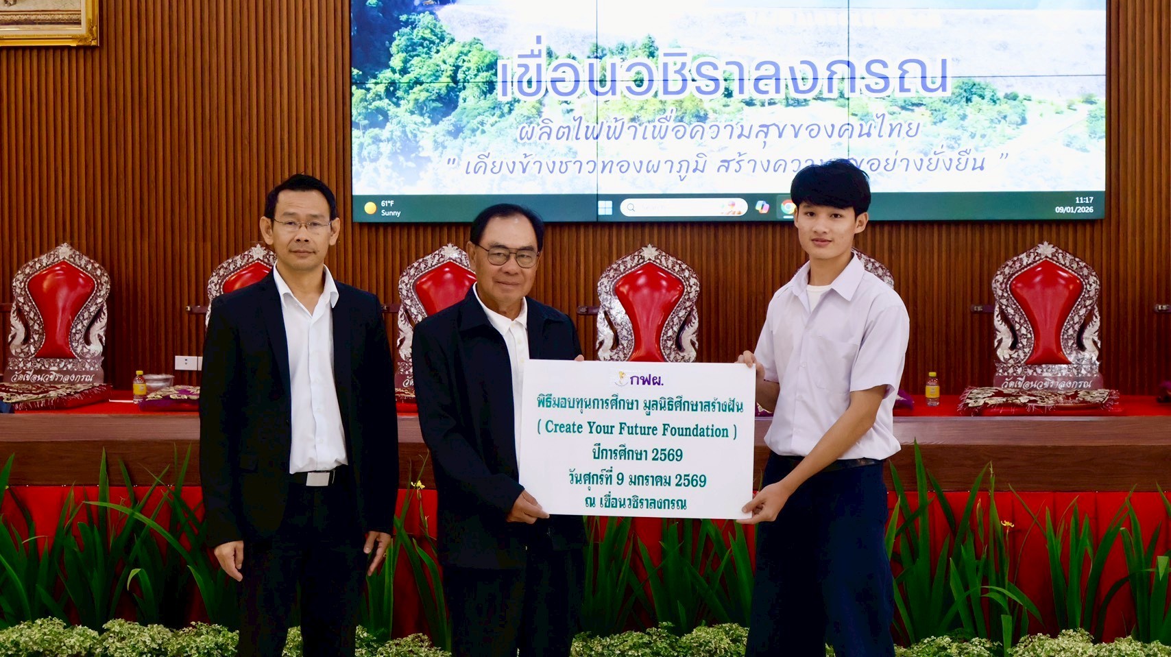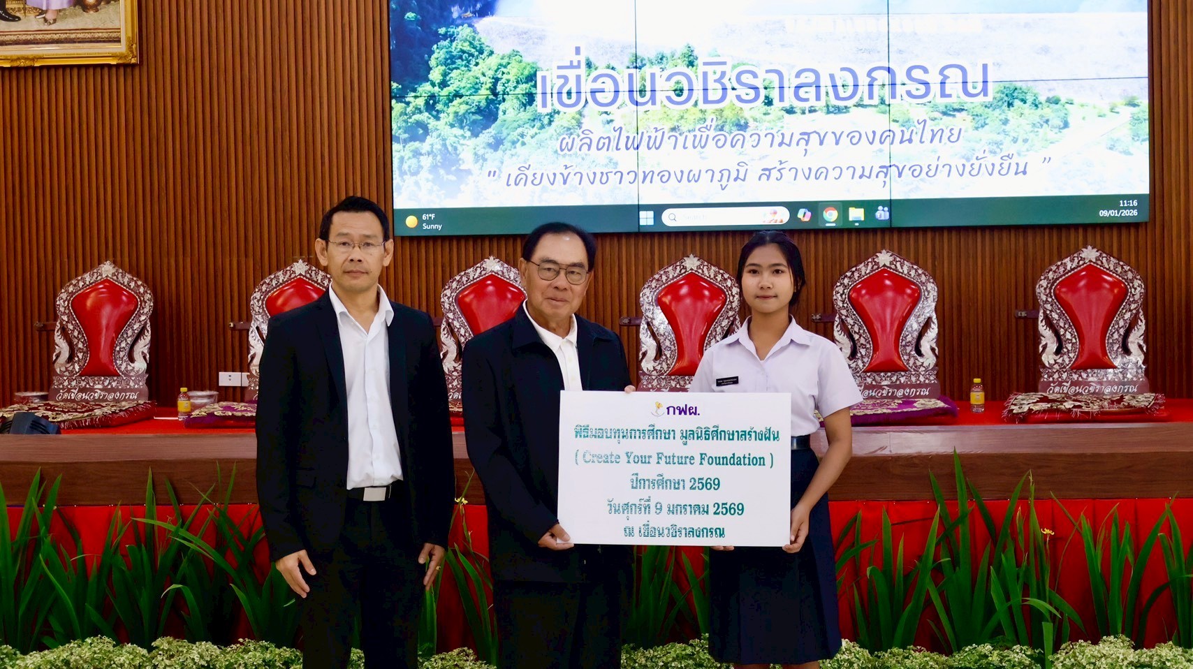 On January 9, 2026, the EGAT team at Vajiralongkorn Dam hosted a scholarship distribution ceremony for CYF scholarship recipients from Thong Pha Phum Industrial and Community Education College. As of the second semester of 2025, we are awarding 15 scholarships to this college through our partnership with EGAT.